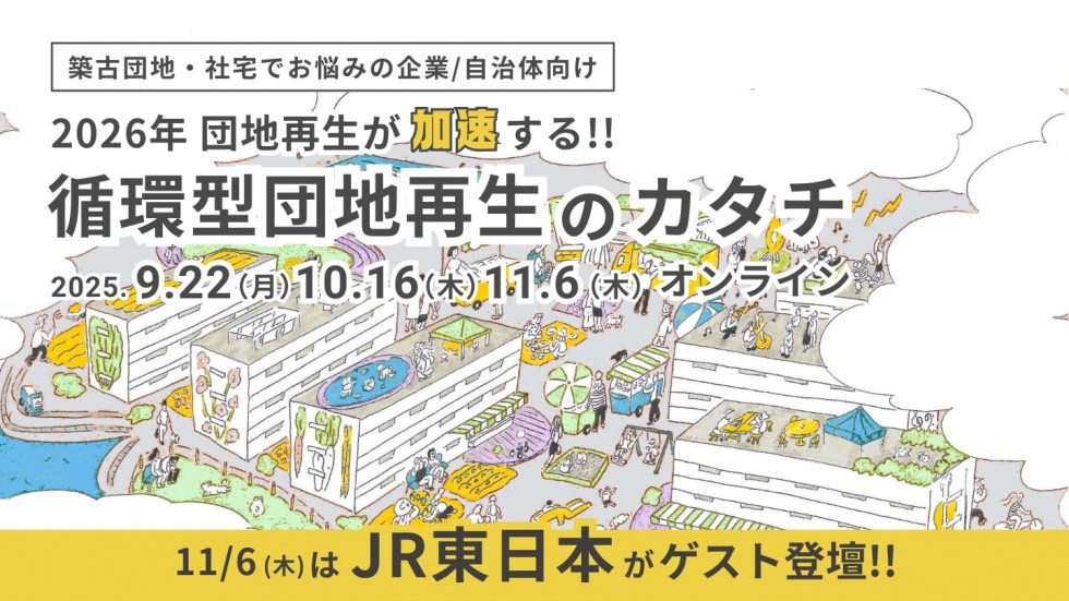 団地セミナー3回目となる今回は、JR東日本担当者が登壇。築古社宅が抱える課題、再生のカギ、地域への思いなどをお聞きします。
